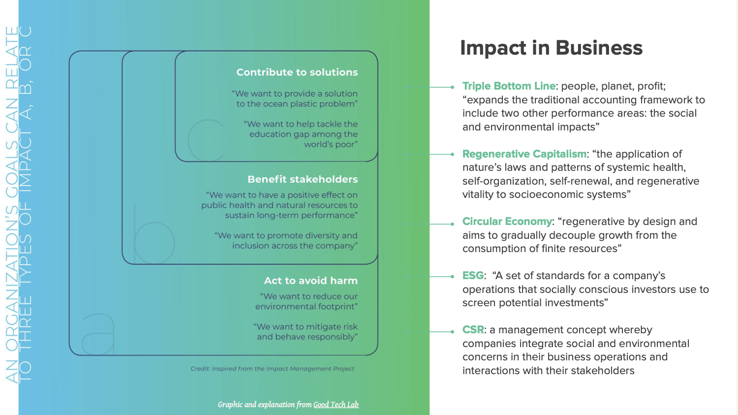 Every business needs to decide: How ambitious does it want to be in its impact? This slide maps the different levels of commitment to impact that we see in business, and where some of the predominant sustainability models fall within this scale.