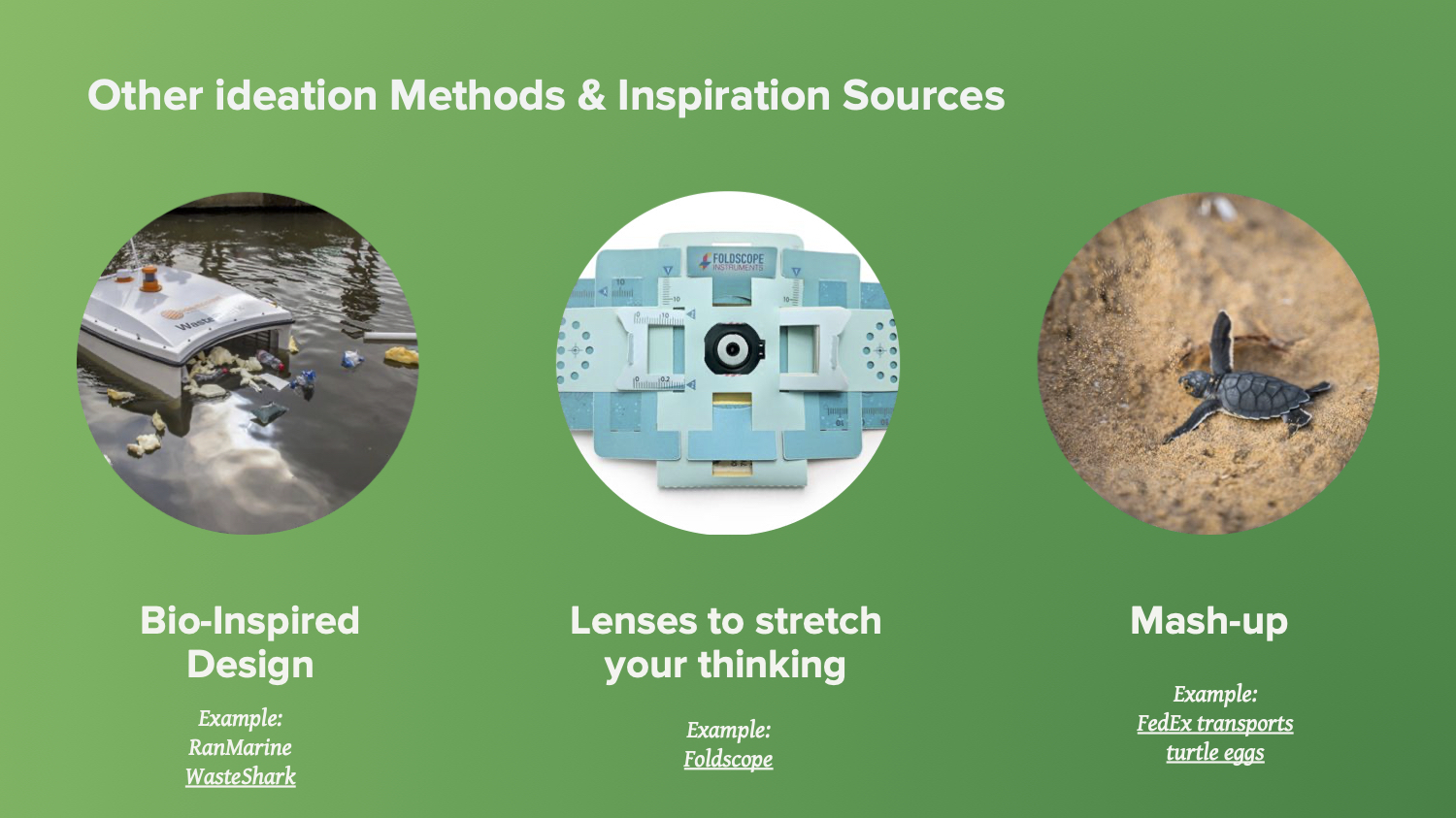 There are many more methods for getting inspired or pushing your ideas even further. Don’t stop after your first brainstorm; keep pushing yourself to explore more possibilities as you refine your ideas. Depending on your team’s needs, these can complement or replace brainstorming.