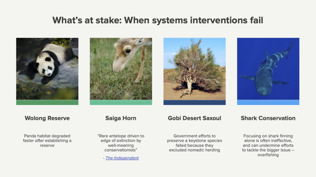 Here, we set the stakes for conservationists by sharing some examples of failed conservation interventions which could have been avoided by a better understanding of the system at hand. There is also a printable handout here.