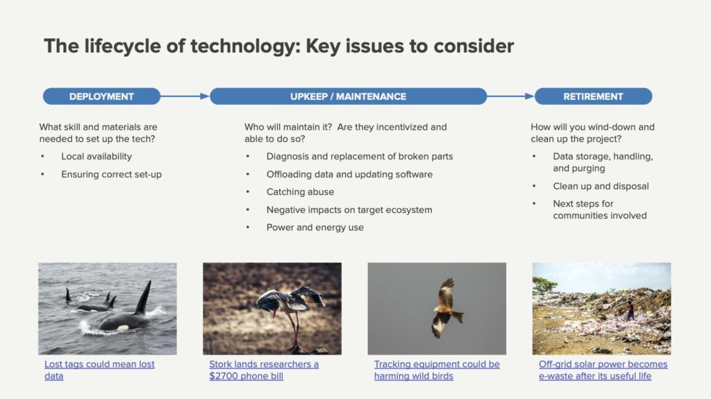 In this lesson, we’ll look at what needs to be considered over the lifetime of a tech intervention. How will the tech scale and last? How will it be retired? What is the tech’s long-term future?
